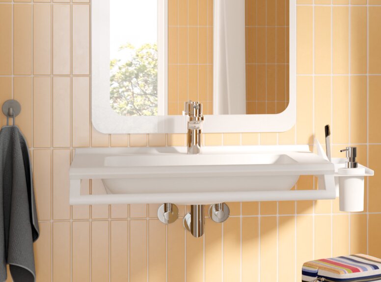 Die ergonomische Gestaltung des Waschtischs trägt wesentlich zur Selbstständigkeit und Sicherheit der Nutzenden bei.Die ergonomische Gestaltung des Waschtischs trägt wesentlich zur Selbstständigkeit und Sicherheit der Nutzenden bei.