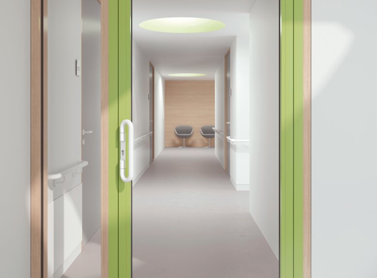 - Geeignete Türgriffe und Schließmechanismen: Türgriffe sollten in einer erreichbaren Höhe angebracht und so gestaltet sein, dass sie leicht zu greifen und zu bedienen sind, auch von Personen mit eingeschränkter Handfunktion. Schließmechanismen sollten ohne großen Kraftaufwand bedienbar sein, um die Selbstständigkeit zu fördern.