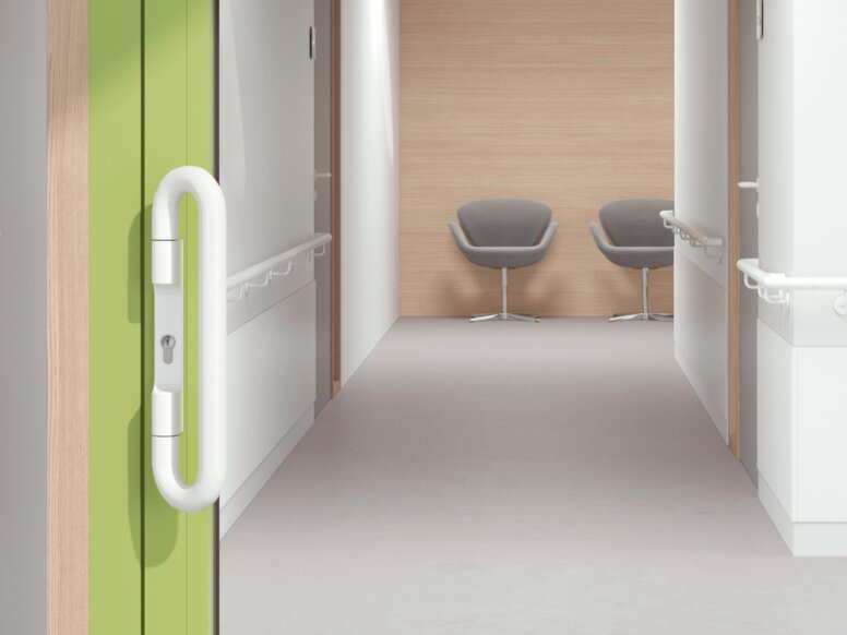 Der Türbeschlag in U-Form ermöglicht eine intuitive und kontaktarme Nutzung, was besonders vorteilhaft ist für: