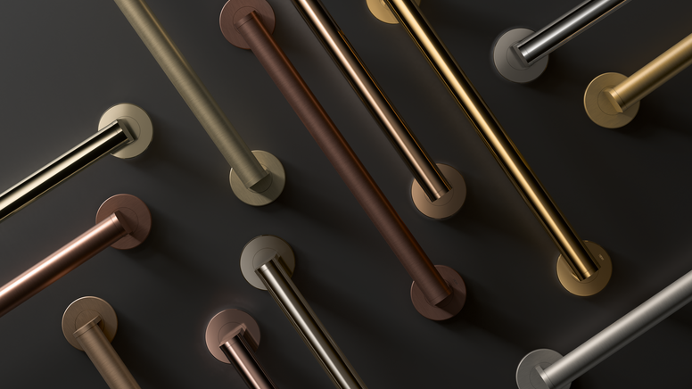 Die Beschichtungen verbinden edles Design mit hoher Kratzfestigkeit, Härte und Korrosionsbeständigkeit und stehen für langlebige Qualität. HEWI bietet diese Veredelung als durchgängige Systemlösung für ganzheitliche Ausstattungskonzepte von der Tür bis in den Sanitärraum. Je nach Produktkategorie sind verschiedene Farbnuancen in gebürsteter oder glänzender Ausführung erhältlich.