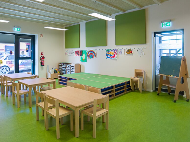 Die Kindertagesstätte befindet sich in einer beschaulichen Umgebung mit Wohn- und Feriensiedlungen, Supermarkt und einer Seniorenresidenz. Mit dieser besteht auch eine direkte Kooperation, um die verschiedenen Generationen auf spielerische Art zu vereinen.
