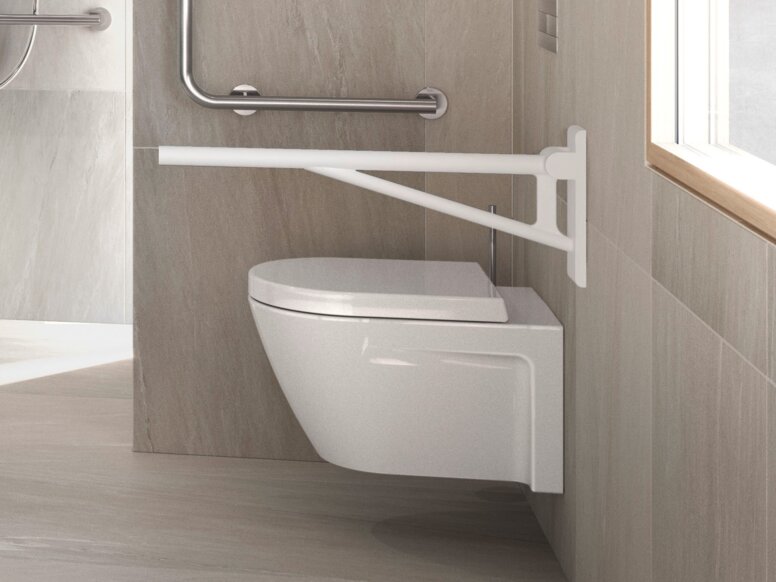 Les poignées d'appui rabattables facilitent le lever et l'assise lorsque la force et la mobilité sont réduites. Les personnes en fauteuil roulant utilisent volontiers une barre d'appui rabattable pour se déplacer du fauteuil roulant aux toilettes et inversement. Un maintien sûr est indispensable dans la salle de bains. L'avantage d'une barre d'appui pliante est qu'elle peut souvent être rabattue contre le mur, ce qui permet de gagner de la place.