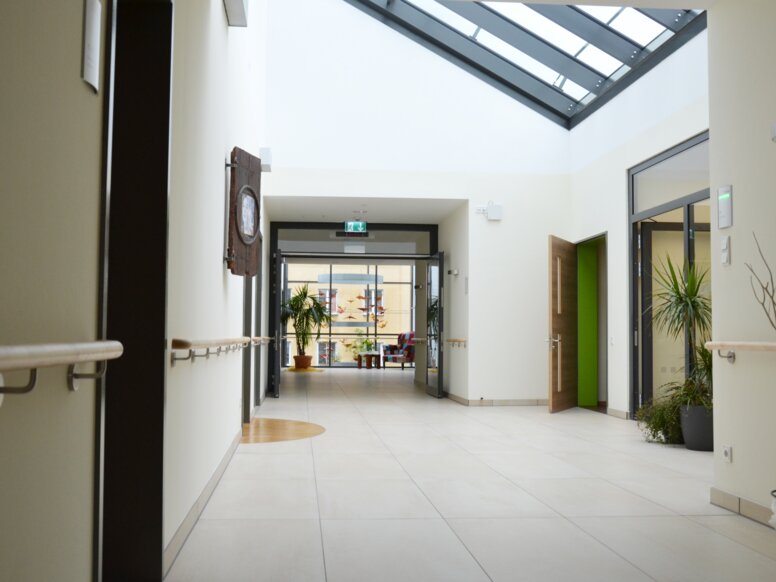 Het hospice telt tien kamers - bij de inrichting werd veel belang gehecht aan een huiselijke sfeer. Zo hebben de kamers een eigen toegang tot de tuin. De badkamers werden drempelvrij ontworpen. Ook hier ligt de nadruk op het huiselijke karakter: bij de verchroomde sanitaire accessoires voor de WC werden verchroomde draaggrepen gekozen. De wasbak heeft geïntegreerde handgrepen die dienen om de gebruiker naar de wasbak toe te trekken en deze te stabiliseren. Door zijn ontwerp is de wastafel zowel staand als zittend gemakkelijk te gebruiken, bijvoorbeeld met een rolstoel.