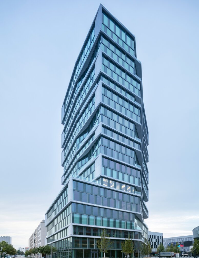 Vanuit een soort glazen voetstuk van zeven verdiepingen schuift de toren verdieping voor verdieping, afwisselend 97,5 meter naar de hemel om "een interessante, stedelijke sculptuur" te vormen, zoals Gewers Pudewill het noemt. De dynamische uitsteeksels en uitsparingen in de gevel vormen grote balkons en terrassen op alle verdiepingen. Meanderende, horizontale banden van sierbeton geven het gebouw structuur en zorgen voor een interessant accent. Het glazen omhulsel laat de toren vanuit elke kijkrichting en afhankelijk van de stand van de zon in een ander licht schitteren, waardoor de levendige en gelaagde kubusvorm wordt benadrukt.
