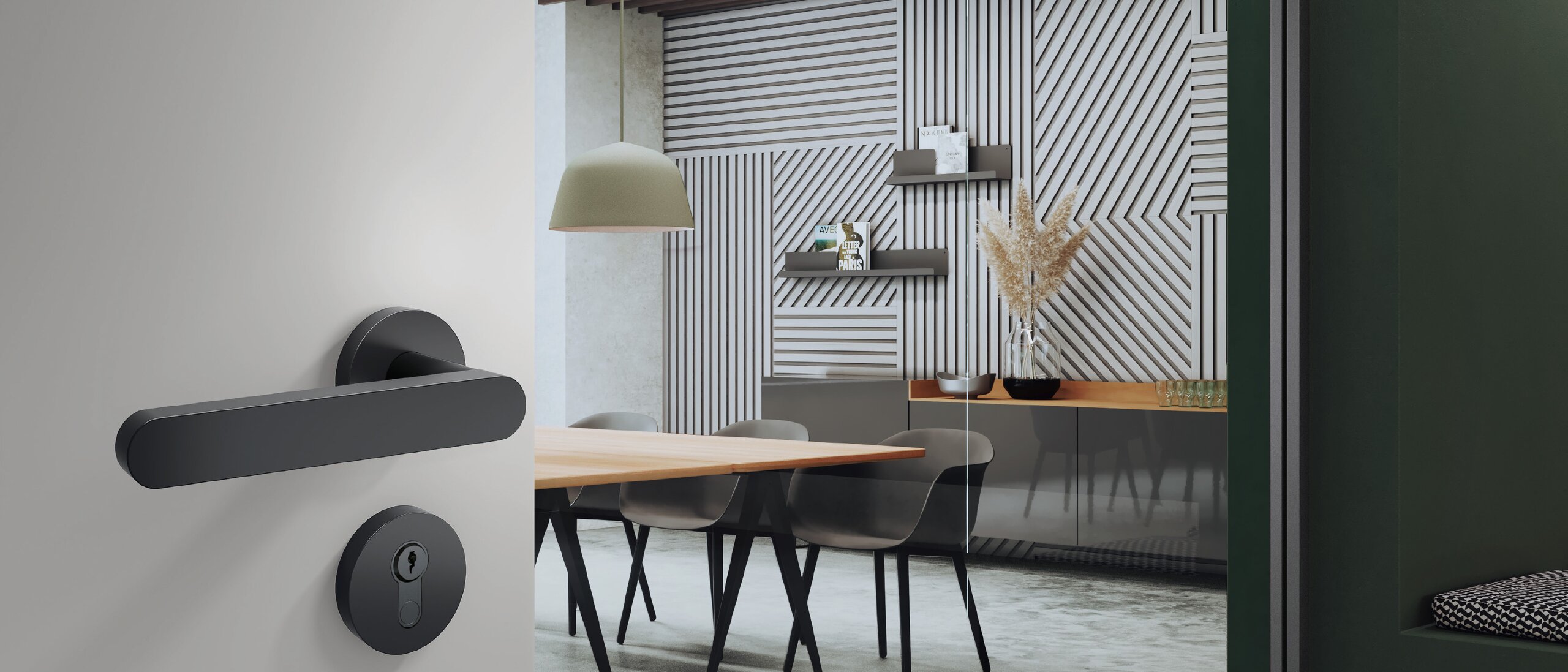 Een samenhangend kleurconcept leidt tot een harmonieuze totaalindruk bij het binnenkomen van een ruimte. Een van de kleinste designelementen is de deurgreep. Ontdek vier armaturen in matzwart om het interieur te accentueren.