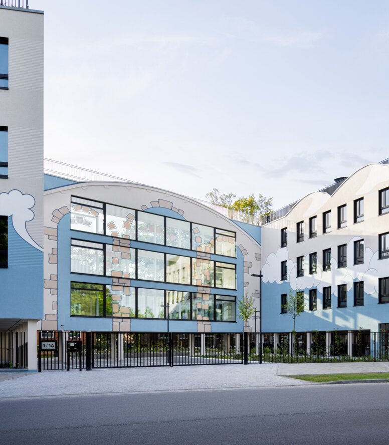 De Michael-Ende Grundschule in Filmpark Babelsberg laat op indrukwekkende wijze zien hoe sanitaire ruimtes in de onderwijssector zowel een kleurrijk als esthetisch ontwerp kunnen hebben.