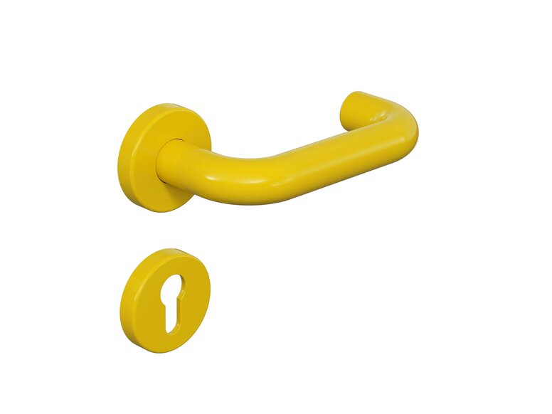 Het originele design brengt een stijlvol accent met zijn duidelijke vormentaal. In de schitterend gele uitvoering nodigt de deurkruk je als het ware uit om binnen te komen. Als essentiële en functionele bouwsteen in de architectuur is de HEWI-klassieker echter veel meer dan een deuropener. Leja ziet het als onderdeel van de algehele creatieve context van een ruimte, "als een eerste ontmoeting" die "de bezoeker verwelkomt met openheid en speelsheid". Want een creatieve houding wordt ook - of vooral - uitgedrukt in detail.