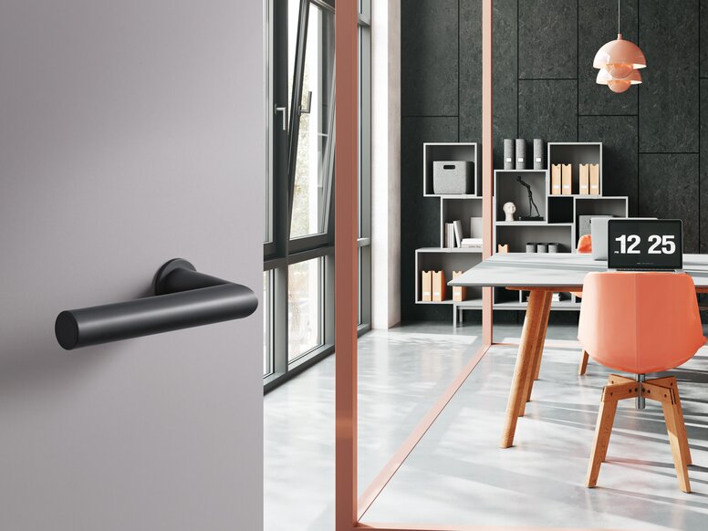 Innovatieve ontwikkelingen zijn kenmerkend voor HEWI. In 2002 werd de bouwbeslagserie S 162 gecreëerd, die nu talrijke beslagen en sanitaire accessoires met een uniform design omvat. Op de foto ziet u de designvariant Mini met het aanzienlijk verkleinde rozet.