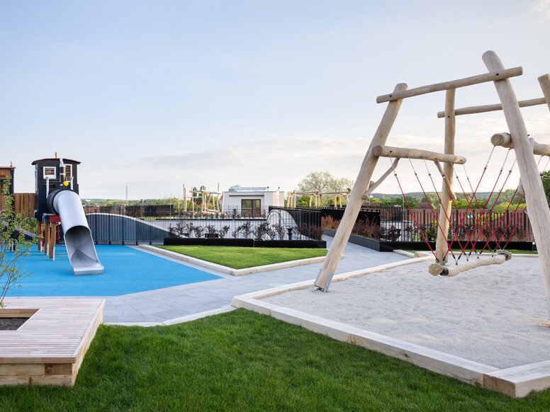 De Michael Ende Grundschule werd gebouwd op het terrein naast het voormalige filmpark als start voor de nieuwe woonwijk. Zo’n 450 kinderen kunnen hier op een oppervlakte van 2.200 vierkante meter les volgen. De aangrenzende opvang biedt plaats aan 350 kinderen. Op het tegenoverliggende terrein, geïntegreerd in de parkeerplaats van het Filmpark, ligt de nieuwe sporthal met twee velden, een aangrenzende atletiekbaan en een verspringbak.