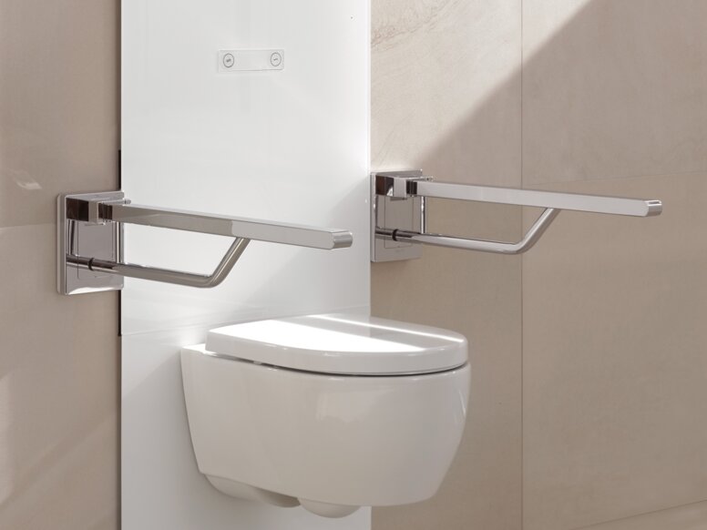 De in hoogte verstelbare S 50 modules zijn bijzonder interessant voor de woonomgeving , maar worden ook gebruikt in hoogwaardige commerciële gebouwen - d.w.z. in de semi-publieke omgeving. Met de optie om twee opklapbare steungrepen te monteren, kan het in hoogte verstelbare toilet zelfs als barrièrevrij toilet worden uitgevoerd. Gebruikers profiteren van de functies die in de S 50 zijn geïntegreerd - het ontwerp staat hier centraal. Het vlakke productontwerp is een visuele blikvanger in elke badkamer.