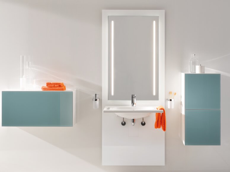 Gebruikers kunnen de S 50 wastafelmodule traploos verstellen met 30 cm. De volledige module beweegt zodat de spiegel niet wordt afgedekt door de wastafel. De geïntegreerde spiegel is onverlicht of met LED-verlichting verkrijgbaar.