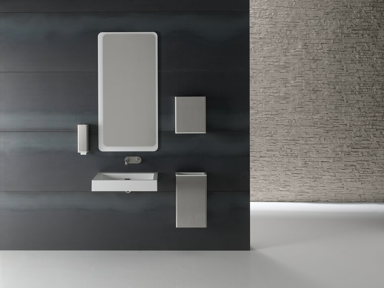 De sanitaire serie 805 is ontwikkeld voor gebruik in de openbare ruimte. Het wordt gekenmerkt door een hoge functionaliteit.Zo zijn er bijvoorbeeld niveau-indicatoren geïntegreerd in de dispenserproducten om de opslag van verbruiksartikelen zoals zeep of papieren handdoeken te vergemakkelijken.De keuze van de materialen en het ontwerp vereenvoudigen de reiniging van de producten. Doordachte details, zoals afsluitbare dispensers of verborgen sluitingen, beschermen tegen diefstal en vandalisme