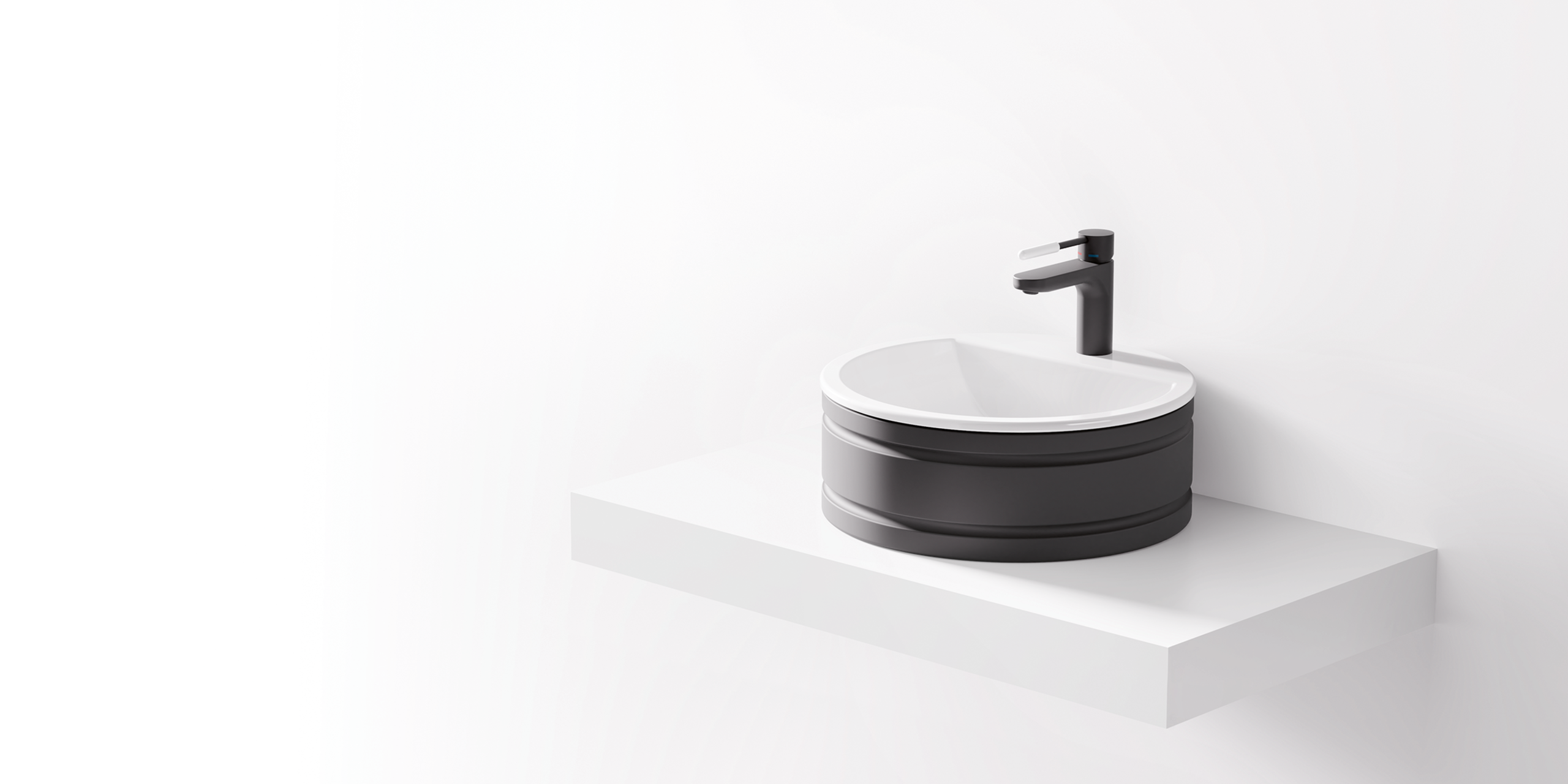 Met DUO breidt HEWI zijn assortiment uit met een ronde opzetwastafel van hoogwaardig keramiek, die esthetiek en functionaliteit op elegante wijze combineert. De heldere vormtaal en het contrastrijke design zorgen voor opvallende accenten in de badkamer thuis, in hotels of in openbare ruimtes.