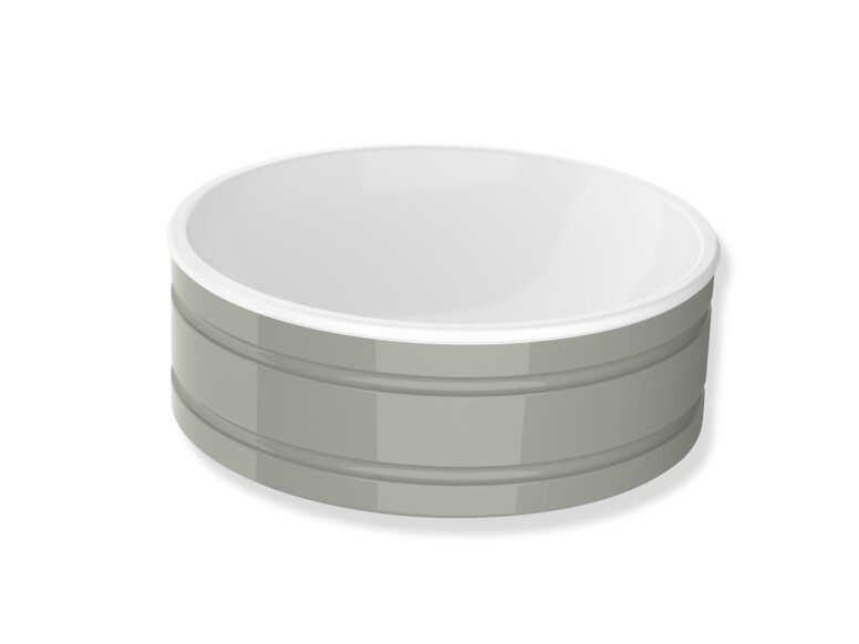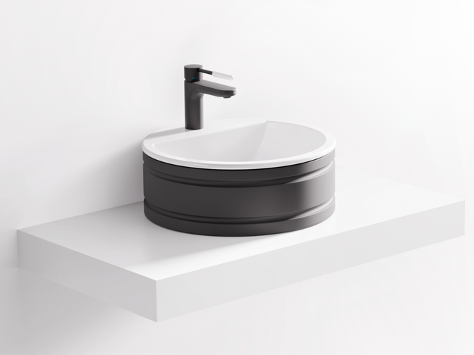 Qua design kan de wastafel met een witte binnenkant worden gecombineerd met een buitenkant in glanzend wit, glanzend grijs of mat zwart.